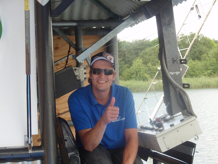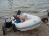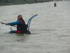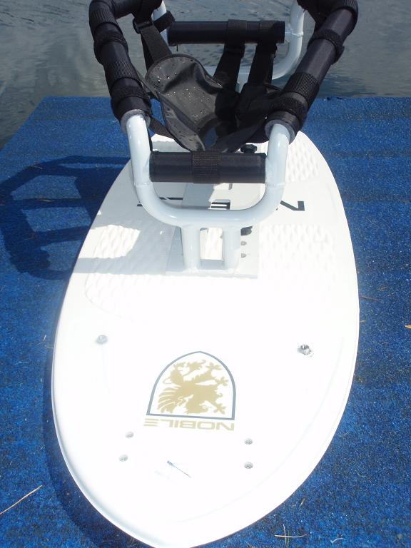 Leraar Bart helpt me in mijn zitje op het kitemobile board! |